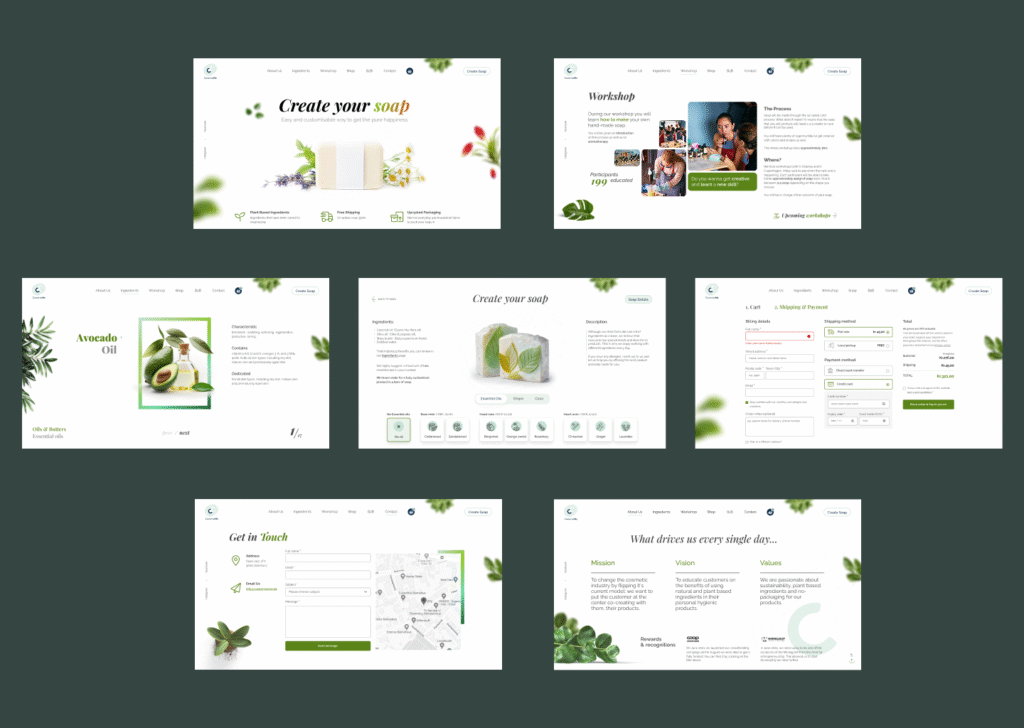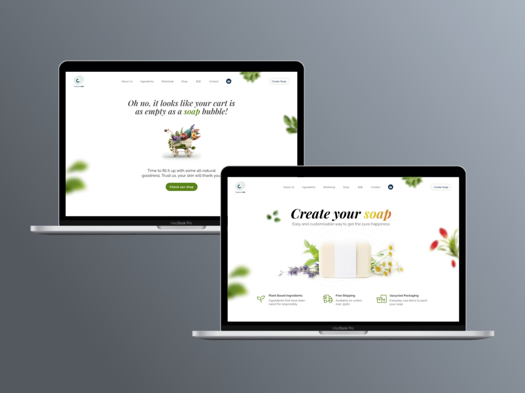 We decided to focus on 3 macro-sections: an e-shop, a presentation of the workshops and a description of the sustainable products used. This focused scope allowed us to launch faster while underlining the company’s values towards sustainability.