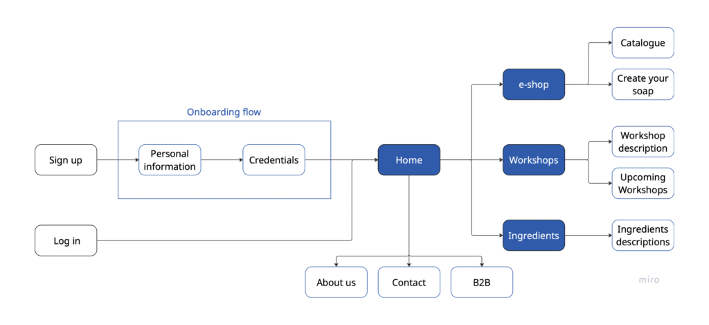 After we identified the key areas to focus on, I moved on to devising what the user flows would look like for different user roles. These roles needed to have different levels of access to the tools and information, requiring careful planning upfront. Aligning on these flows early through flow charts helped to move faster and avoid having to rework parts of the website later on.